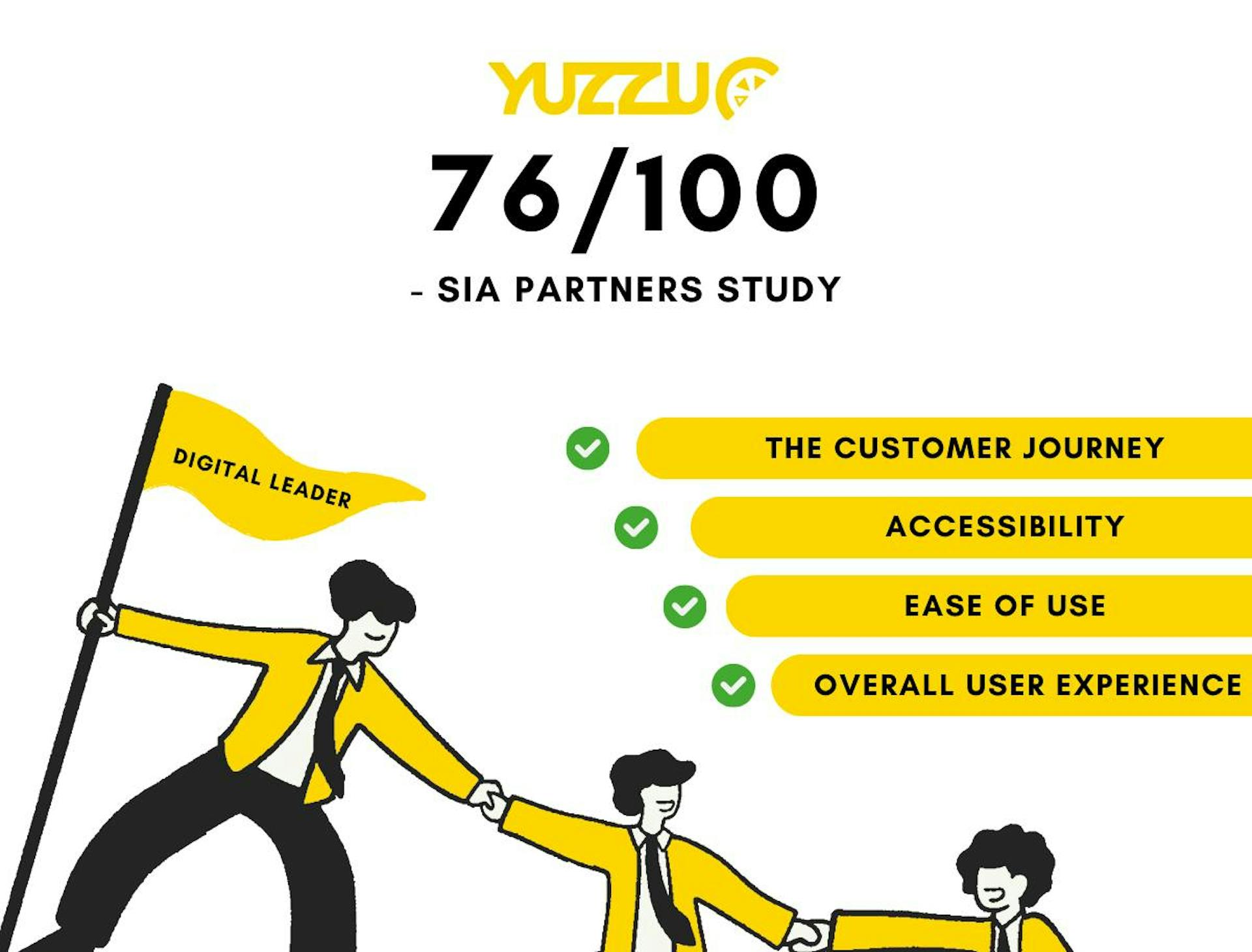 Yuzzu, leader du marché des assurances directes, a accéléré sa transformation numérique ces deux dernières années. L'étude récemment menée par Sia Partners illustre une nouvelle fois l'impact positif de cette digitalisation sur l'expérience client. Avec un score considérable de 76/100, Yuzzu confirme sa position parmi les acteurs numériques de premier plan dans le secteur.